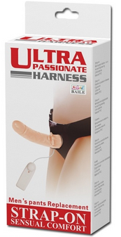 Arnés para mujer. La parte frontal esta fabricada en cuero sintetico y la banda en elastano, silicona hipoalergénica para mayor placer y comodidad con tu pareja. Incluye medidor de velocidad.